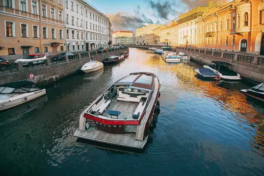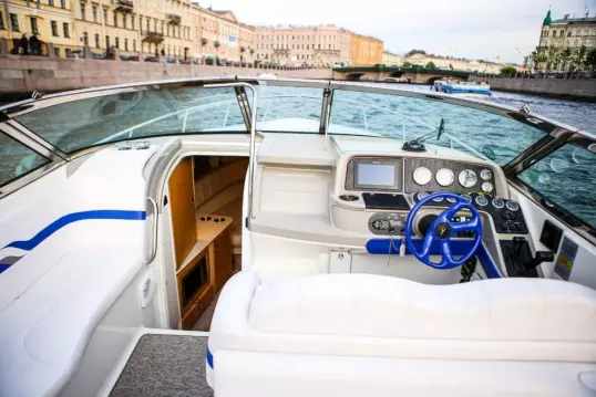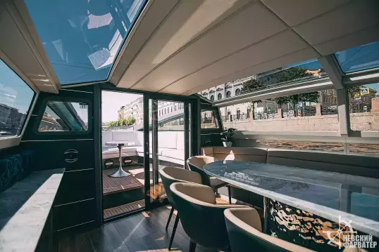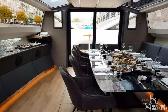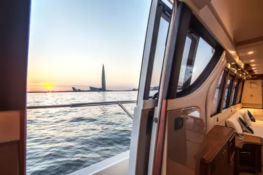 Каютная яхта Sunday Aqualiner 77 - идеальный выбор для прогулки по рекам Санкт-Петербурга.