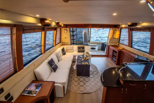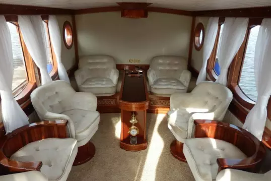 Открытое носовое пространство с прекрасным обзором видов города, где расположившись на диване, вы будете слышать только шелест волн.