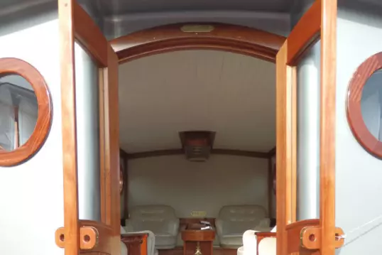 Предлагаем Вашим услугам моторную яхту «Ваше Величество». Она восстановлена по чертежам и фотодокументам яхты 1903 года, созданной для свадебной прогулки по Т