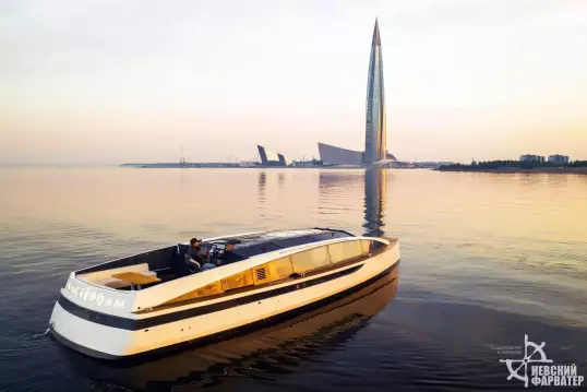 Футуристичная яхта по каналам с панорамным салоном в полный рост