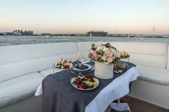 Каютная яхта Sunday Aqualiner 77 - идеальный выбор для прогулки по рекам Санкт-Петербурга.