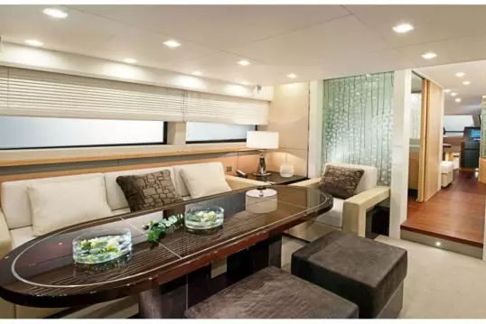 Спроектированная итальянскими инженерами яхта легко узнается по линиям экстерьера, по мельчайшим деталям внутренней отделки и по тщательной проработке всех элементов судн