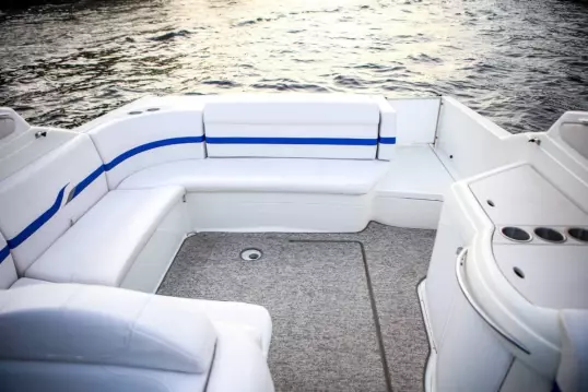 Просторный флайбридж с белоснежными диванами