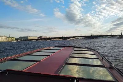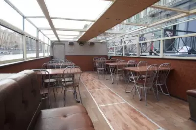 Небольшой, но очень уютный и комфортабельный теплоход для прогулок по рекам и каналам Санкт-Петербурга.