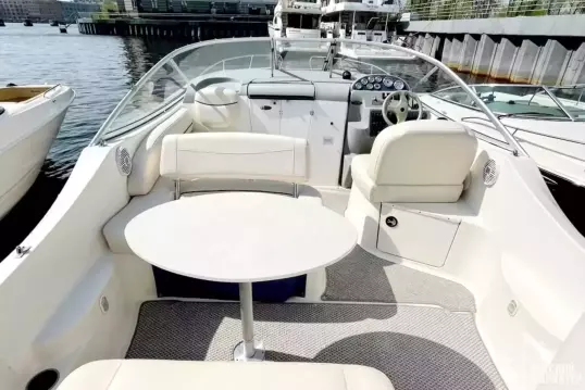 Быстрый и вместительный катер Bayliner 2350 Bowrider.Непередаваемые ощущения и комфорт вы испытываете сразу, как вступаете на борт.Полукруглый диван с белоснежной кожей,